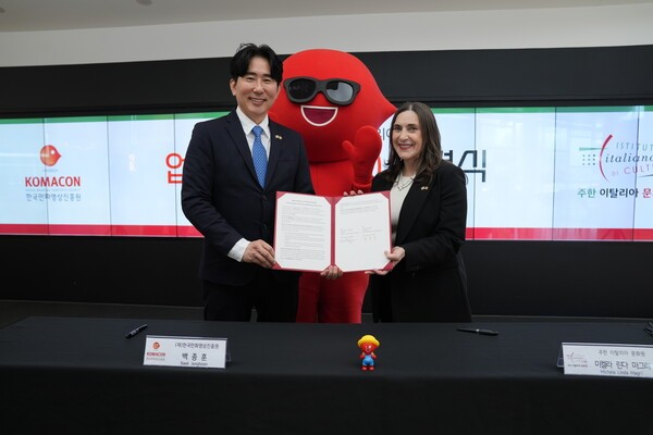 한국만화영상진흥원(원장 백종훈)과 주한이탈리아문화원(원장 미켈라 린다 마그리)은 3월 18일 한국만화박물관에서 업무협약(MOU)을 체결했다. 이번 협약은 한국과 이탈리아 간 만화 예술과 산업의 교류를 확대하고, 공동 협력 사업을 추진하기 위해 마련됐다.