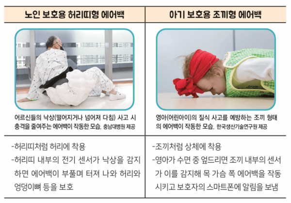 재성 기자: 그렇구나…. 하지만 에어백은 사고가 났을 때 사람들의 몸을 안전하게 보호해주는 장치임은 틀림없어. 자동차만 아니라 이걸 여러 분야에 적용하면 참 좋을 텐데….