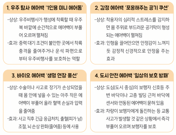 내 마음에 쏙 드는 건 4번 ‘도시 안전 에어백’! 대체 어떤 의도로 이런 걸 생각해낸 거야?