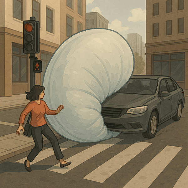 챗GPT: 그것도 모를까봐? 자동차가 충돌하면 차량 내부 곳곳에서 터져 나오는 공기 주머니잖아. 평상시엔 안 보이다가 센서가 충격을 감지하면 순식간에 부풀어 오르면서 탑승자의 머리, 가슴, 무릎 등을 보호해 충격을 줄여주는 장치지. 이 그림처럼!