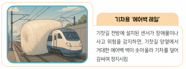 재성 기자: 앞서 우리가 살펴본 에어백들은 모두 사고가 날 때 사람이 받는 충격을 줄여주는 것이잖아. 그런데 너의 ‘도시 안전 에어백’은 사고 자체를 아예 차단하는 ‘예방형 에어백’이라는 점이 대단해! 이런 관점에서 생각한다면, 기차가 기찻길을 벗어나는 사고를 막는 에어백도 개발할 수 있겠는데?