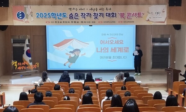 대전광역시교육청(교육감 설동호)은 학생이 스스로 쓴 책을 무대 위에서 소개하고 창작의 여정을 나누는 「2025 숨은 작가 찾기 대회 ‘북 콘서트’」를 11월 3일부터 13일까지(6일간) 대전교육정보원에서 운영 중이라고 밝혔다.