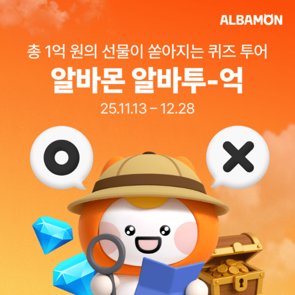 아르바이트 플랫폼 알바몬(대표이사 윤현준)이 수능과 겨울방학으로 이어지는 알바 성수기를 맞아 총 1억 원 상당 선물을 증정하는 대규모 프로모션 ‘떠나자, 더 멀리 알바몬 원정대’를 실시한다.