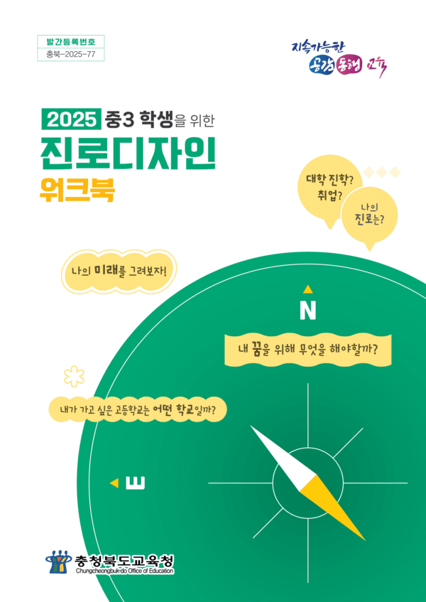 충청북도교육청(교육감 윤건영)은 18일(화), 도내 중학교 132교의 3학년 전체에 <중3 대상 진로디자인 워크북>을 보급했다고 밝혔다.