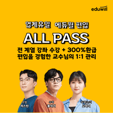 국민교육기업 에듀윌(대표 양형남)의 편입 교육 브랜드 ‘에듀윌 편입’이 2027학년도 편입 시험을 준비하는 수험생을 위해 전 영역을 하나의 패스로 대비할 수 있는 ‘2027 올패스(ALL PASS)’를 새롭게 출시했다고 21일 밝혔다.